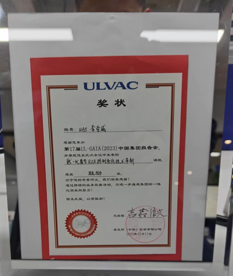 [愛發科自動化]“愛發科自動化新一代真空RTR控制系統技術革新”課題在UL-GAIA(2023)中國集團報告會中榮獲“鼓勵獎”