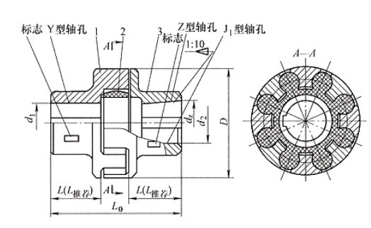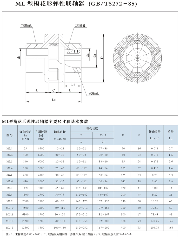 標記示例:ML3型梅花形彈性聯軸器MT3 彈性件硬度≥75HZ